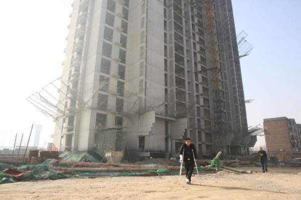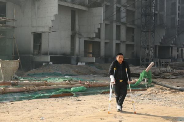 河北定州胜利街建华社区的一个工棚内,重庆涪陵籍农民工赵家友拄着拐杖目光沉重地望着窗外被雾霾笼罩的天空。因为合伙承包的定州市东明家具城商业楼项目885.9万元工程款被拖欠,去年10月22日他带工人讨要工程尾款时遭追打,赵家友的腿被开发商定州市丰源房地产开发有限公司(以下简称:丰源房地产公司)工作人员打骨折。