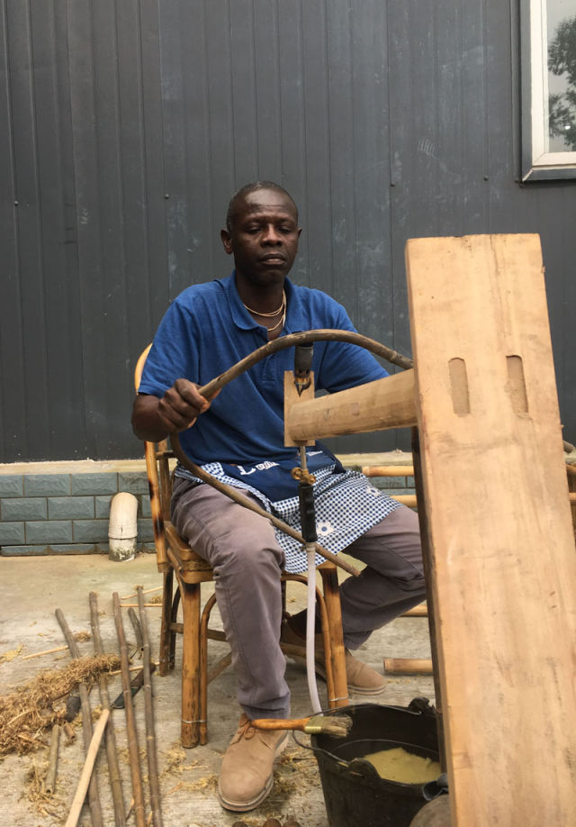 来自加纳的学员在青神县竹藤制品开发与加工技术培训班进行学习。新华社记者陈地 摄