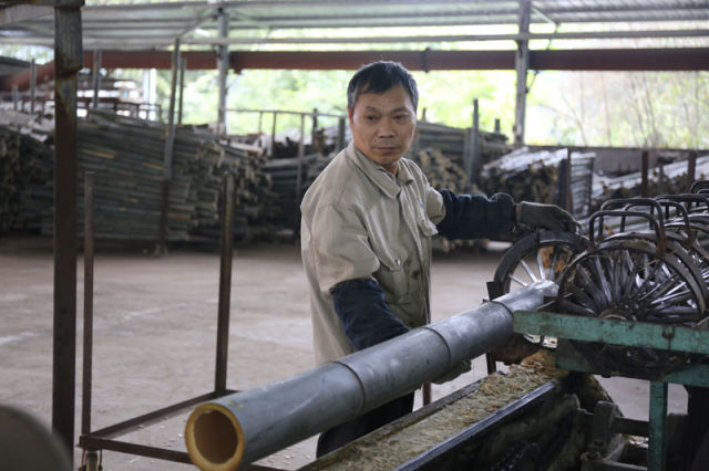 2018年3月30日,泸州市纳溪区竹韵公司工人在楠竹初加工车间。四川省林业厅 张杨 摄