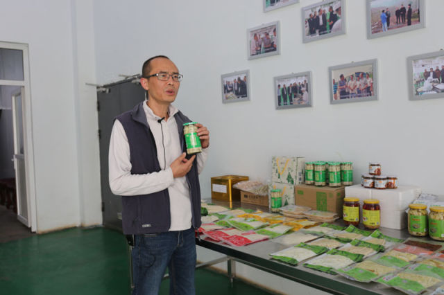 4月1日,宜宾有正农业公司负责人费思涛在介绍竹笋系列食品。四川省林业厅 张杨 摄