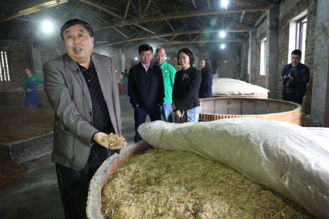 3月31日,泸州纳溪区活之 酿酒业公司,酒竹酒创始人朱天虎正在介绍竹料酿酒新工艺。四川省林业厅 张杨 摄