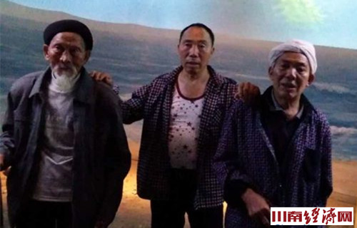 李新政(左一)与女婿陈才香(中)一起