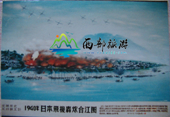 1940年日机轰炸泸州合江的油画
