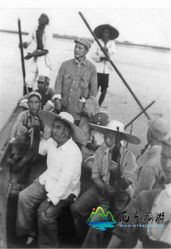 朱德总司令在白洋淀视察,泸州人管开智(站着者)担任警卫