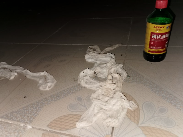 手术室遗落的碘伏和纱布。新京报记者 李英强 摄