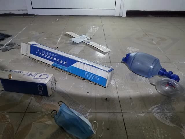 2020年1月23日,手术室遗落的医用引流导管和吸氧面罩。新京报记者 李英强 摄