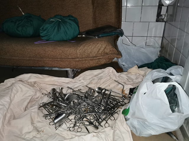 2019年12月14日,手术场地被新河警方查抄后遗落的器械。新京报记者 李英强 摄