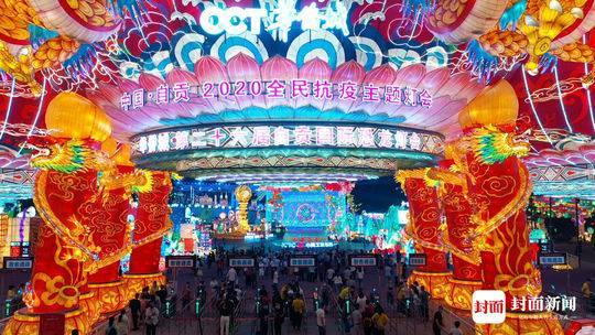 5月22日晚,重启的中国自贡·华侨城第26届自贡国际恐龙灯会,首次推出“云观灯”,全民抗疫、一带一路、上元灯火等主题彩灯异常璀璨,吸引了70余万人点赞。