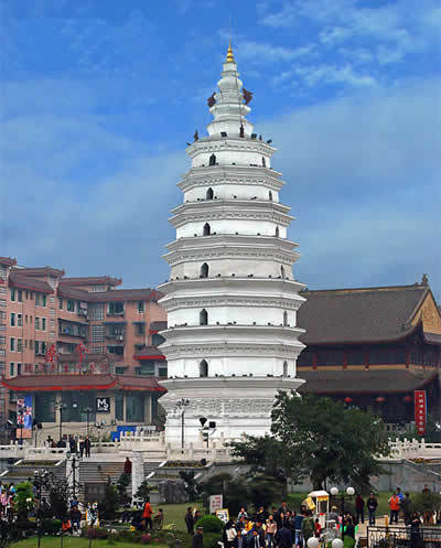 三、泸州干中之龙,藏有真穴福地,乃天地生成。纵观泸州不难看出,从红卫山到龙透关,来龙一路停歇吐气,从云盘梁到灯杆山至环监站连中山医学院系列蓝坳,再抬头到忠山之颠,至中山缓行偷脉到宝庆街、莲花寺,在回转于白塔(关圣殿)乃真穴却人为毁之。自有先天之器穴,如不毁损,此间风水可能又是另一番胜景。报恩塔始建于宋朝,建塔前,泸州人才辈出,先后出过尹吉普、董允等重量级国家栋梁之才。