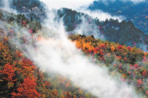 五彩的秋叶在大巴山山头漫开。