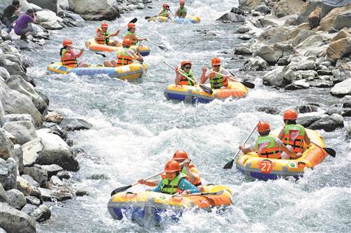 游客体验重庆城口亢谷漂流。