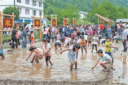 游客接踵摩肩的河鱼农耕文化体验园。