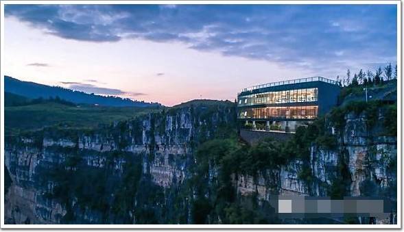 中国西南部的贵州省黔西南布依族苗族自治州海尾峡谷,独特的喀斯特地貌层峦叠嶂、气势恢宏……一间美术馆如同剔透的水晶石,镶嵌在垂直耸立的百米崖壁边缘,仿佛悬浮于山水之间。