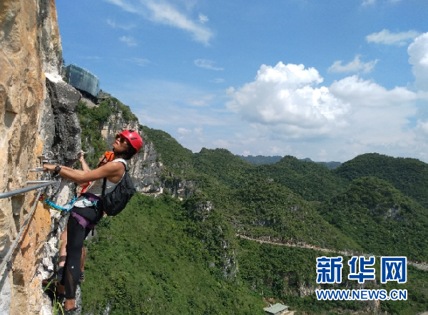 “溶岩美术馆”坐落于垂直高度约165米的巨大岩壁之上。新华社记者陶亮摄