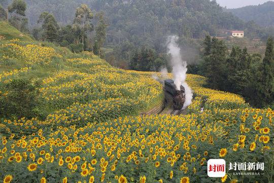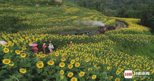 封面新闻记者了解到,以往,嘉阳小火车主要以春季铁路沿线的油菜花美景而闻名,今年首次在段家湾栽种了8万株向日葵,为小火车沿线在秋季增添了新的亮点。