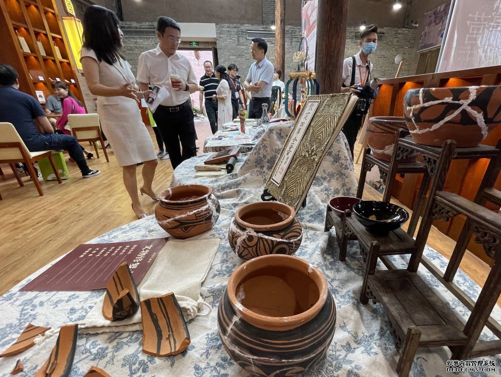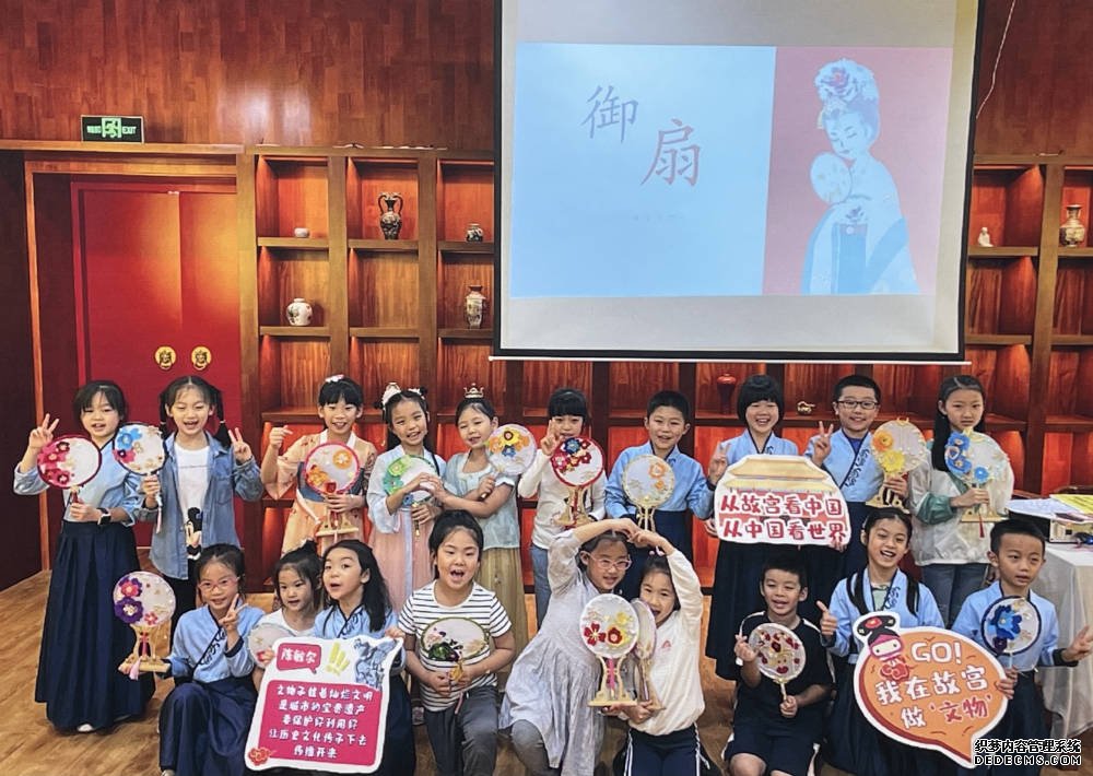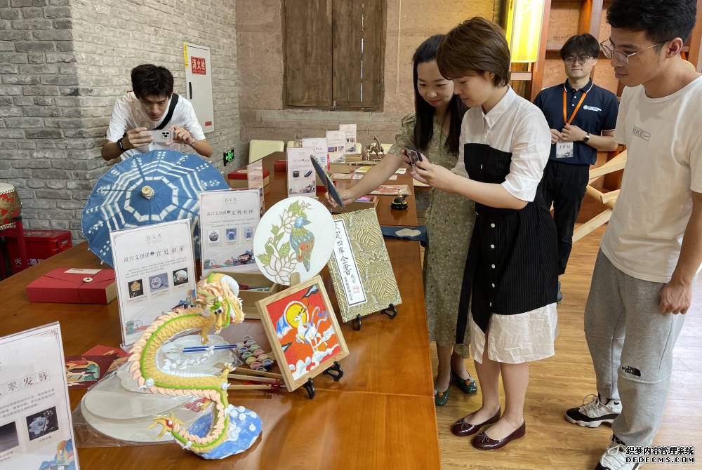 活动现场还展示了国宝文创课专用的文创时钟、掐丝珐琅、点翠、宫廷宣纸扇、非遗面塑等十余款课程盒子,南迁历史课中的“国宝装载、南迁之路、国宝抢运”游戏道具及课程说明,文物保护课的文物修复模拟材料包及课程成果等内容。