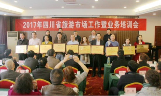 四川新闻网成都3月1日讯(记者 李京枝 图/文)2017年四川省旅游市场工作暨业务培训会议在成都召开。会议总结了2016年全省旅游市场工作,安排部署2017年全省旅游市场工作,并正式宣布了《四川省入境旅游奖励办法》,对“2015年入境游客人天数排名奖”前十旅行社授牌。当天,四川省旅游发展委员会主任傅勇林出席会议并作了重要讲话。省旅游发展委员会副主任宋铭主持会议。