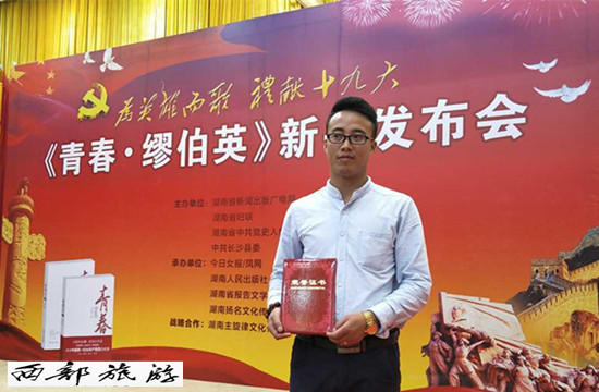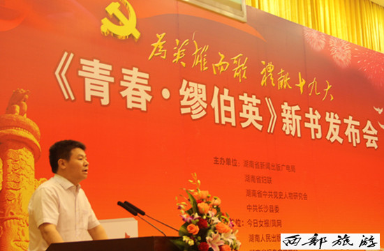西部旅游网长沙讯(初旭)5月12日上午,全面系统介绍中共第一位女共产党员缪伯英生平故事的报告文学作品《青春·缪伯英》新书发布会在湖南省委九所宾馆会议中心举行。湖南省委原副书记文选德、本书作者王杏芬、毛泽东特型演员缪世璇出席了当天的新书发布会并致辞,中国作家协会原副主席谭谈出席发布会并从文字特色、可读价值等方面对该书予以高度评价。