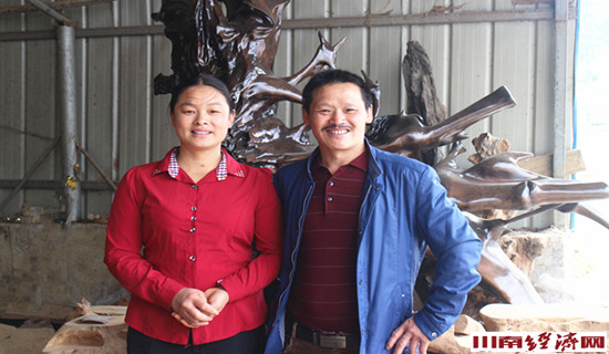 自然界鬼斧神工造就了滔滔赤水河,这只是自然界千年万年的创作。生活在赤水河畔的一对农村夫妻却化腐朽为神奇,用树根树桩造出了神仙、帝王、将相、美女、飞禽、走兽、佳花异卉……他们用一把锯子,一把斧子,一根凿子,雕出了艺术精品,雕出了乌蒙山的勃勃生机。这就是四川古蔺县水口镇川黔工艺品厂负责人王堂灿和他的妻子梁小玲。夫妻二人通过自己的双手,把看似平常的“朽木”变成了活灵活现的艺术品,也雕刻出了自己的新生活,成为川黔交界的一方传奇。