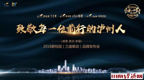 川南经济网讯(初旭 梁平)2月12日晚,2018碧桂园.川江首府(三盘联动)品牌发布会在泸州大剧院举行。现场高朋满座,座无虚席。碧桂园地产相关领导及数十家主流媒体、泸州各界名流嘉宾及数百名意向客户汇聚一堂,共同见证这一盛大喜事。