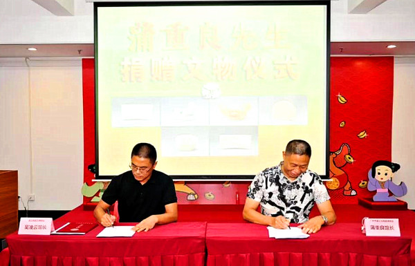 川南经济网讯(朱俊)6月23日,一场备受关注的捐赠仪式在广州西汉南越王博物馆举行。著名收藏家、广州市普公古陶瓷博物馆馆长,泸州市长江博物馆馆长,泸州市乡贤会副会长蒲重良先生,将自己珍藏的31件文物捐赠给了西汉南越王博物馆。该馆馆长吴凌云对蒲重良先生的“大爱”之举表示敬意和感谢,并向他颁发了文物捐赠证书。