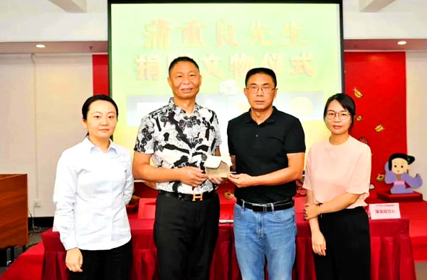 在捐赠仪式上,蒲重良再捐赠瓷枕标本一枚