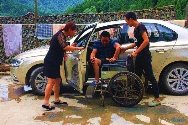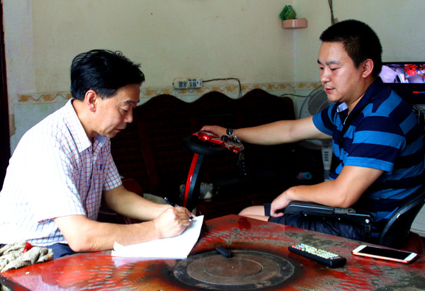 今年4月,古蔺高乐公司扶贫车间开到偏远的万寿村。罗江主动承担起9户有残疾人的扶贫户送货和收货上门的任务。公司每次将五金扣件的半成品送到双沙镇上,罗江就在爸妈的陪同下,行车11公里,从村各扶贫户家中将做好的扣件收集好送到双沙镇上,再从双沙镇上将新一批货运回到村里,将货发送到各扶贫户手中。每月这样的收货发货要跑四次,每一次至少转40公里山路,每一次跑完拥有扶贫车间家庭的农户需要两三个小时(包括上下车)。