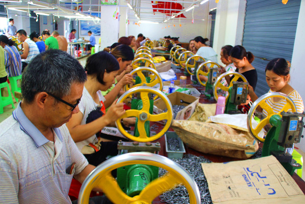 冒着酷暑,我们来到位于古蔺县永乐街道办事处水落村易地扶贫搬迁点,走进工人比较集中的高乐公司五金扶贫车间。