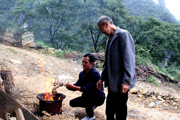 我们花了三四个小时,在村子里转悠了大半天,整个生产组没有看到有一栋二楼钢混结构的房子,大都是木板房、板房、土坯房,钢混房少之又少。村民告诉说,村里几十户人家,很难见到一个像样的厕所,大都采取在猪牛圈里或野山上解决。没有一家有一个像样的洗澡室和厨房,煮饭或炒菜,也只能在屋外进行。偶有陌生人到村子里,村民都会不约而同地问:同志,是来帮助我们修路的吗?每每得到否定的回答,都一脸的失落感。那悠悠的叹气声,撞击得对面的老岩余音袅袅……