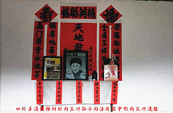 供奉在郑义兴与郑群州老家旧居家神神龛上的郑义兴遗像