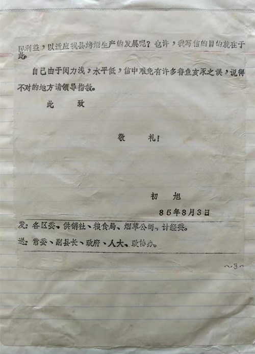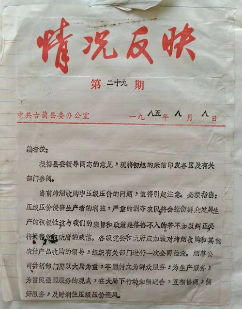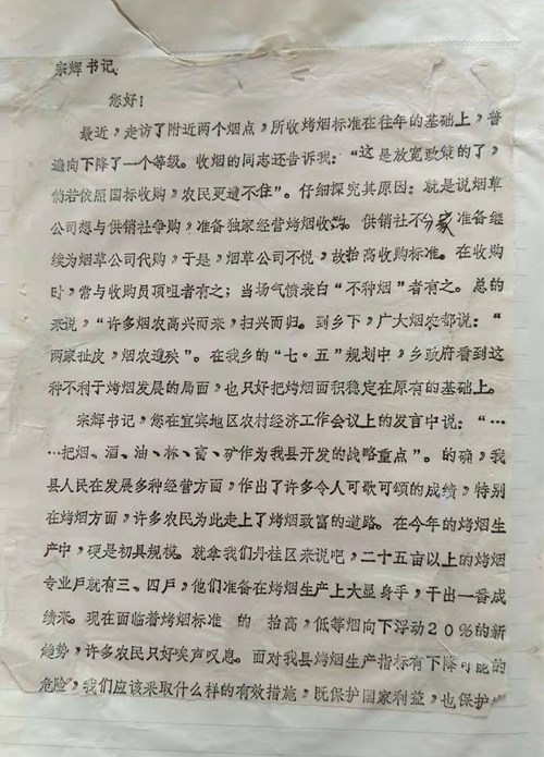 这位员工的谈话,让我想起了几十年前的往事,那时,我工作所在的县区,当地烟草公司与供销社分家,供销社为烟草公司代收烟叶,可恶的烟草公司与供销社之间有矛盾,他们就把气撒在烟农身上,故意抬高烤烟收购标准,压级压价,让老百姓苦不堪言,无处诉冤情。那时,我作为一名乡村烟农的孩子,看见烟草公司的不人道,有些愤愤不平,凭着一腔热血,冒着生命危险,提笔向当时的县委书记反映此事,好在这位叫何宗辉的老书记,出身农民,对农民充满着深厚的阶级感情,立即召开紧急会议,对当地的烟草部门进行全面整顿,及时纠正了这起烟草公司坑农害农的歪风邪气,使得当地老百姓拍手称快。