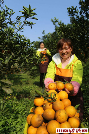川南经济网讯 “这里的甜橙脆嫩多汁,并且控药、控肥绿色栽种,符合消费需求,这次我们订购3万斤。”泸州果真水果连锁超市的钟永正在与果农陈善兵签订甜橙采购合同。又到橙红橘绿时。今年泸州江阳区通滩镇的“清家”甜橙喜获丰收。行走在魏国村,处处可以看到果农忙着采摘熟果,或路边销售、或装车外运,游人忙着拍照留恋、品尝佳果。金灿灿的果子镶嵌在绿叶中压弯了枝头,惹人喜爱。