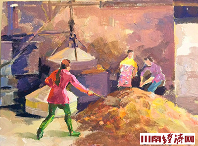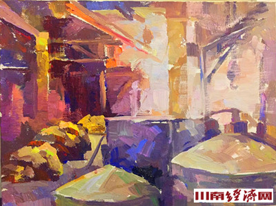 2017年的人间四月天,泸州市美术家协会的一群艺术家,背着着画板,带着纸笔,走近四川古蔺仙潭酒厂,也走近火热的生活。站在美酒河畔,回望历史的脚迹,聆听赤水的涛声,用心与生活对话,与工友同吃同住,和老区心连着心,用笔描绘一潭酒的历练过程。于是,我们看到朴实的如此色彩斑斓,平凡的生活精彩纷呈。让我们一起走近画家,看看笔触到怎样的一潭美酒。