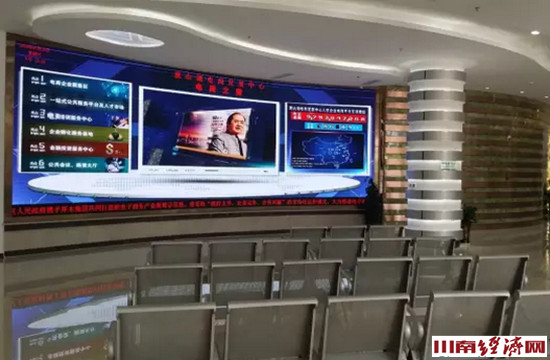 位于观山湖区电商中心的区政府办证大厅播放佛弘居士形象片