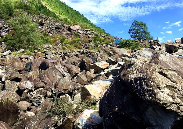 ——刚到汶川老虎嘴,就看到了一大堆泥石,面积超过一个足球场。公安局来接我的司机小刘介绍,去年泥石流冲跨了桥,今年岷江洪水又冲塌了路,抢了几天才通。