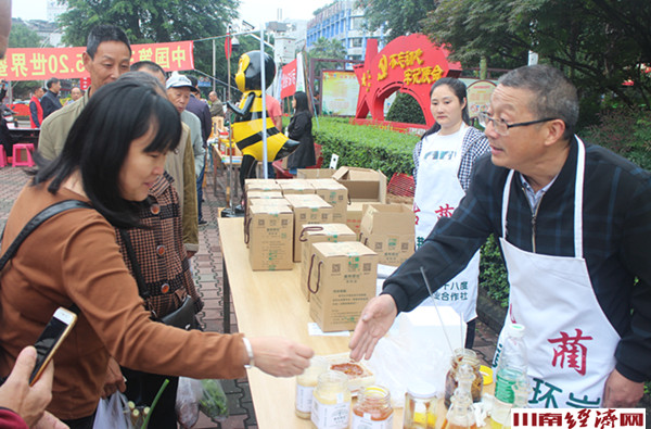 川南经济网讯(初旭)“漫山蜜蜂枝头舞,酿得好蜜引客来”,5月20日是个甜美的日子,是联合国大会设立的“5.20世界蜂蜜日”。为践行“绿水青山就是金山银山”理念,中国第三届“5.20世界蜜蜂日”西南区四川主会场泸州分会场举行蜂蜜产品展销。全市有古蔺县北纬二十八度蜜蜂养殖专业合作等数家著名蜜蜂养殖场、专业合作社携优质蜂蜜、蜂花粉、蜂皇浆等产品参加了这一活动,现场吸引了广大市民驻足品鉴、采购。