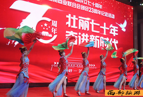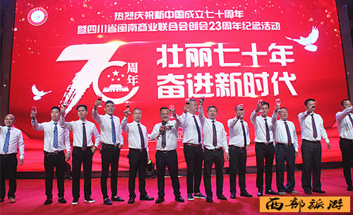 庆典雄壮激越的国歌声中拉开帷幕,现场播放了《一九四九年十月一日,毛泽东主席在天安门城楼上振奋人心的讲话视频》。四川闽南商会的企业家们为现场观众献上了舞蹈《祝福祖国》、舞蹈《欢乐中国节》和诗朗诵《祖国啊,我亲爱的祖国》《我们都是闽南人》等。特邀特型演员缪世璇、歌唱家许歌为现场观众也奉献了精彩的文艺表演。