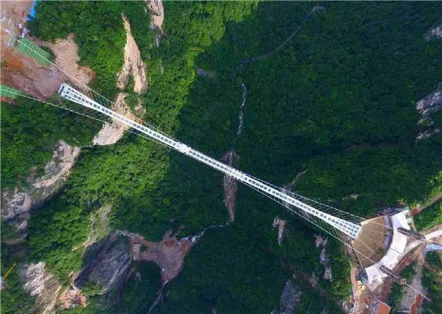 张家界大峡谷玻璃桥位于湖南省的张家界大峡谷景区内,号称世界最长、最高的全透明玻璃桥,玻璃桥总长430米、宽6米,桥面距谷底约300米,可站800人。桥面全部采用透明玻璃铺设,桥中心有全球最高的蹦极台,整个工程无钢筋支架,是一种全玻璃结构的桥梁。玻璃桥建成后,将成为世界首座斜拉式高山峡谷玻璃桥;并创下世界最高最长玻璃桥、首次使用新型复合材料建造桥梁等多项世界之最。