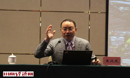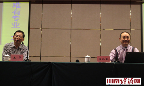 专题讲座由泸州市委统战部副部长、泸州市工商联党组书记王华主持。中国著名品牌研究咨询专家王汉武先生作题为《精准制导引爆品牌》的专题培训讲座。王汉武教授结合吉普、心相印、可口可乐、苹果等知名品牌就实施品牌战略的“铁律”,进行了深入浅出的分析,并从品牌战略的重要性、品溢价的驱动机制、定位品牌核心价值等方面介绍了创建优势品牌的关键法则。他指出,一个企业、一个城市要通过定标准、提质量、创品牌、树标杆来抢占市场份额,坚持走标准引领、品牌带动发展之路,把品牌建设作为推进供给侧结构性改革重要举措。 结合品牌建设课题,数字与环境能量学创始人肖木春教授围绕企业发展与自然规律之间的关系,作了《洞悉规律,成就梦想》的课题研讨,引起全场强烈共鸣。