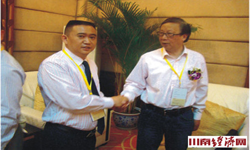 原泸州市市长唐宁(右)对中山泸州商会建设寄予厚望