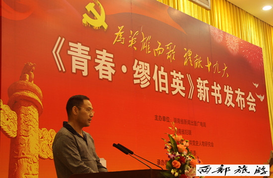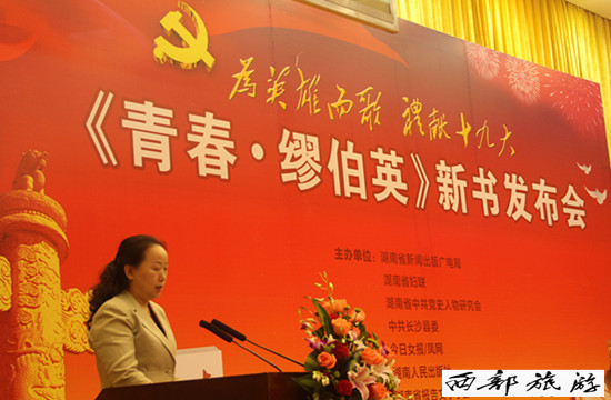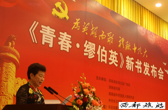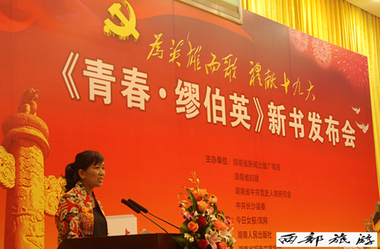 西部旅游网长沙讯(初旭)5月12日上午,全面系统介绍中共第一位女共产党员缪伯英生平故事的报告文学作品《青春·缪伯英》新书发布会在湖南省委九所宾馆会议中心举行。湖南省委原副书记文选德、本书作者王杏芬、毛泽东特型演员缪世璇出席了当天的新书发布会并致辞,中国作家协会原副主席谭谈出席发布会并从文字特色、可读价值等方面对该书予以高度评价。