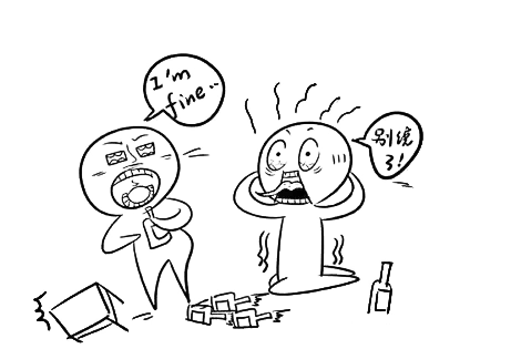 英语就从来没有考及格过,喝多了就整得像口语达人一样,还一哈英语一哈粤语一哈港台腔的。